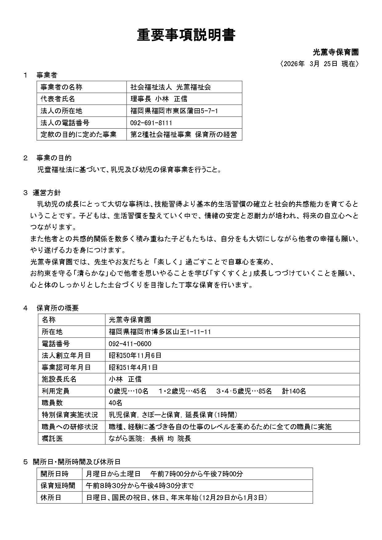 | 昭和51年 4月 1日 | 光薫寺保育園開園(定員100名) |